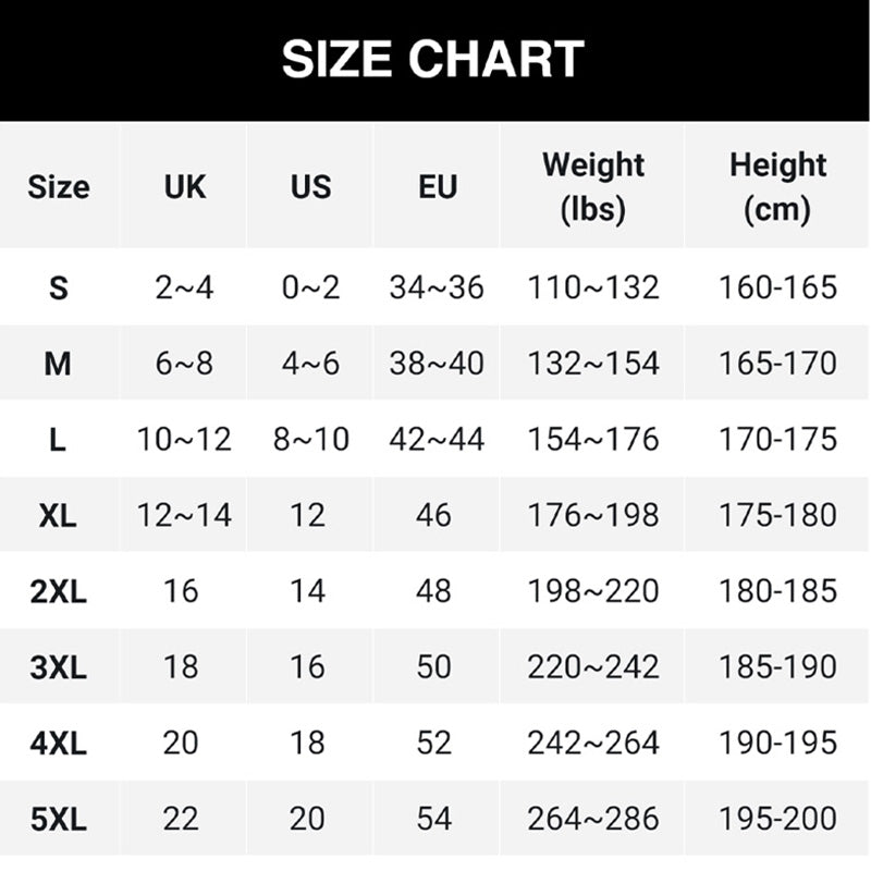 Taille : S, M, L, XL, 2XL, 3XL, 4XL, 5XL
